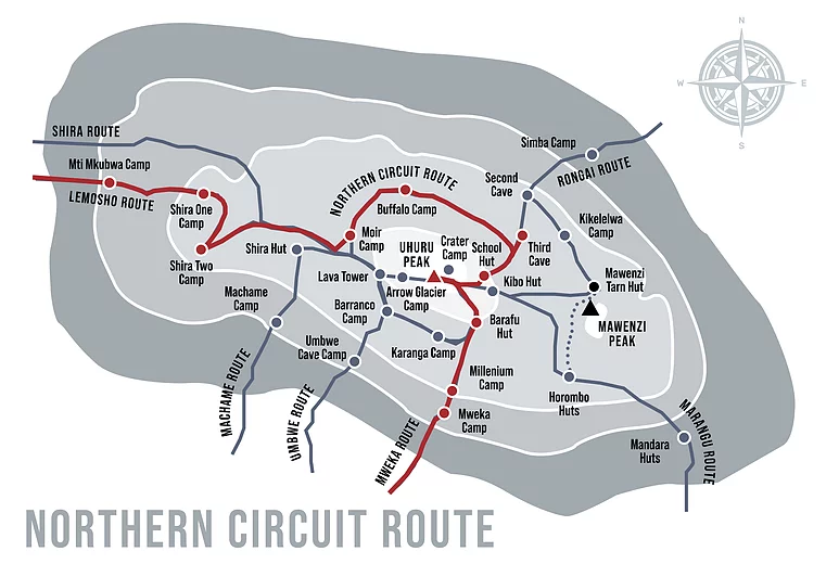 The Northern Circuit route is one of the best routes on Kilimanjaro, offering nearly 360 degrees of beautiful scenery including the quiet, rarely visited northern slopes. As the longest route on Kilimanjaro, the Northern Circuit also has the most acclimatization time and the highest summit success rate. Thus, the Northern Circuit route is highly recommended.